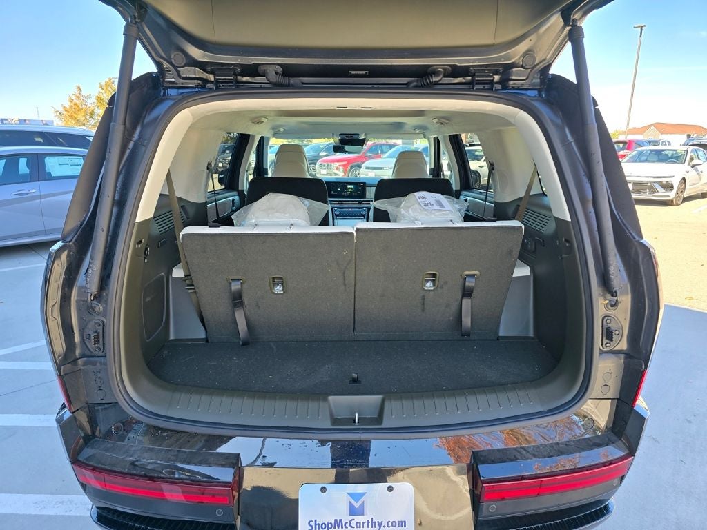 The 2025 Santa Fe marks a complete redesign featuring a boxier, adventure-inspired look and a roomier third-row layout. Its tailgate and cargo area were specifically engineered to create a more open, outdoor-friendly terrace feel ideal for modern families on the go.